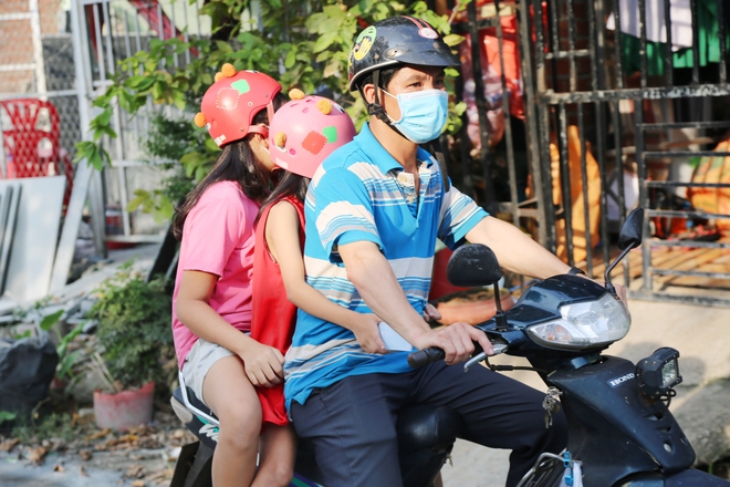Thị xã Bình Long, tỉnh Bình Phước một ngày cuối tháng 4/2022, men theo con đường đất đỏ, chúng tôi tìm đến nhà anh Vũ Đình Khiên (42 tuổi). Loay hoay sửa lại quần áo cho 2 đứa trẻ, trên chiếc xe máy cà tàng, anh Khiên nở một nụ cười hiền hậu rồi đèo con đi học.