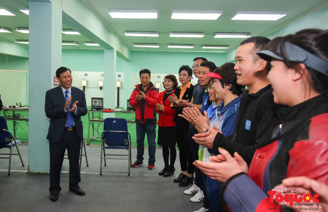 Đến thăm các Đội tuyển Cử tạ, Karate, Wushu, Bắn súng, Bắn cung, Teawondo…Bộ trưởng Nguyễn Ngọc Thiện bày tỏ vui mừng, phấn khởi khi được chứng kiến không khí, tinh thần tập luyện nơi đây.