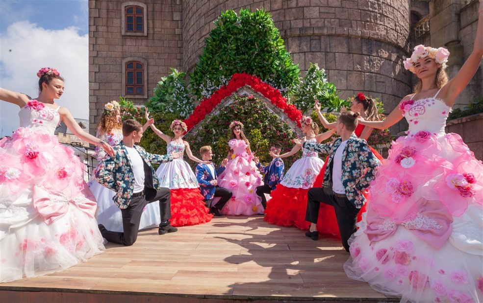 Vườn hoa Bà Nà Hills mùa Xuân này đặc biệt vô cùng, bởi có sự xuất hiện của những "bông hoa biết múa". 40 nghệ sỹ châu Âu đã hóa thân thành những bông hoa di động, trong các bộ cánh cầu kì và sặc sỡ, làm nên những show carnival đặc sắc và khác hẳn so với nhiều carnival Bà Nà mà du khách thường thấy. |