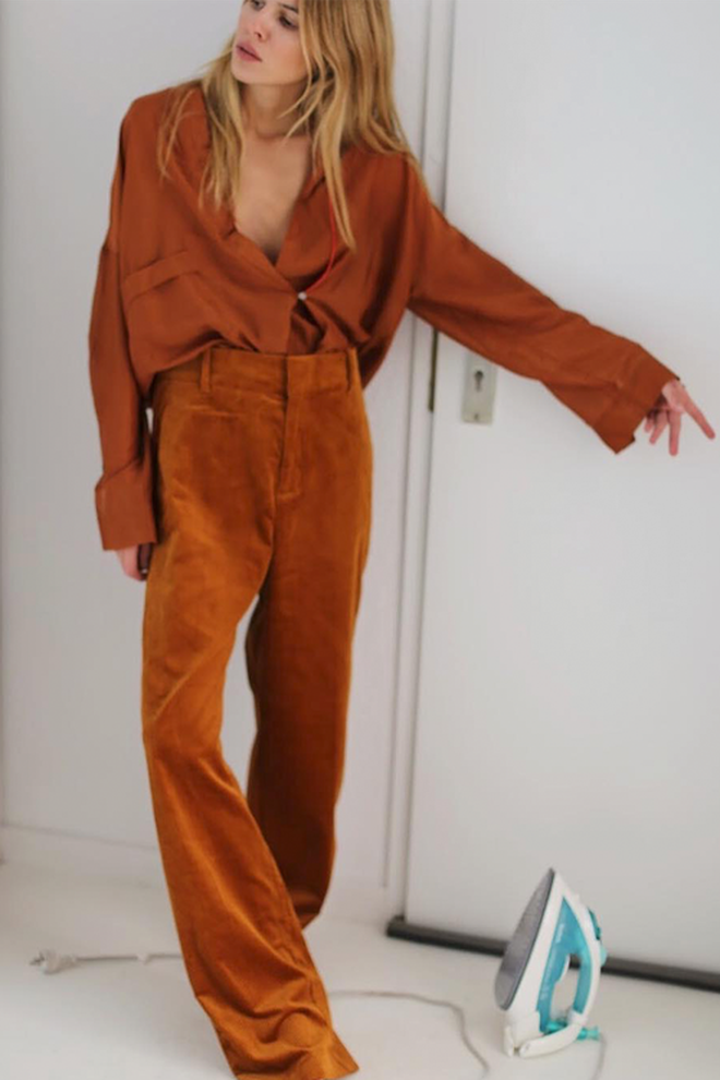 Hè 2022, quần dài màu nâu bỗng chốc được lòng giới trẻ nhờ sức ảnh hưởng của phong cách Y2K. Thay vì chất thô thông thường, các cô nàng ăn chơi phương Tây đã chọn quần màu nâu chất nhung, phối cùng áo phông năng động trẻ trung mà vẫn đầy bắt mắt. Và điểm đặc biệt của quần vải nhung, chính là bạn có thể tùy ý phối nó cùng với bất kì item nào trong tủ đồ nhìn cũng vẫn rất xinh.