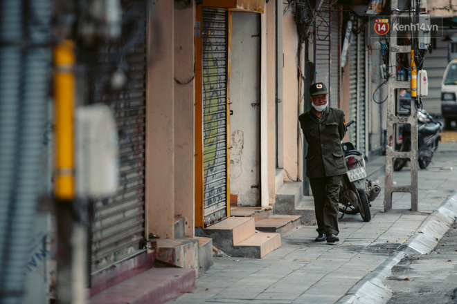 Dù lượng người ra đường giảm rất nhiều nhưng chú cảnh vệ vẫn không lơ là nhiệm vụ.