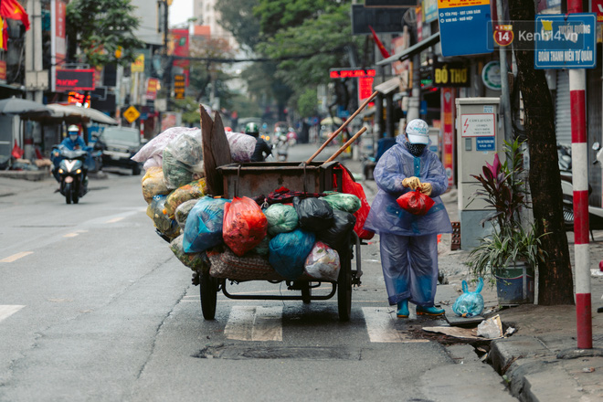 Do các cửa hàng, cửa hiệu tạm dừng kinh doanh nên lượng rác thải đã giảm đôi chút. Tuy nhiên tại các khu dân cư, các cô chú nhân viên vệ sinh vẫn duy trì khối lượng công việc vất vả như thường nhật.