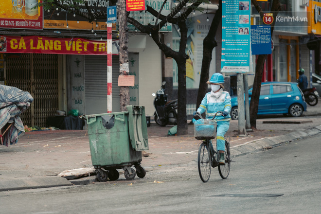 Việc đảm bảo vệ sinh vẫn được chú trọng thực hiện trong mùa dịch và đó cũng là lý do các cô chú nhân viên vệ sinh vẫn ra đường làm việc.