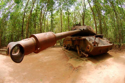 | Trong kháng chiến chống Mỹ, địa đạo Củ Chi đã hứng chịu tất cả các loại bom, pháo. Nguồn: kienthuc.net.vn |