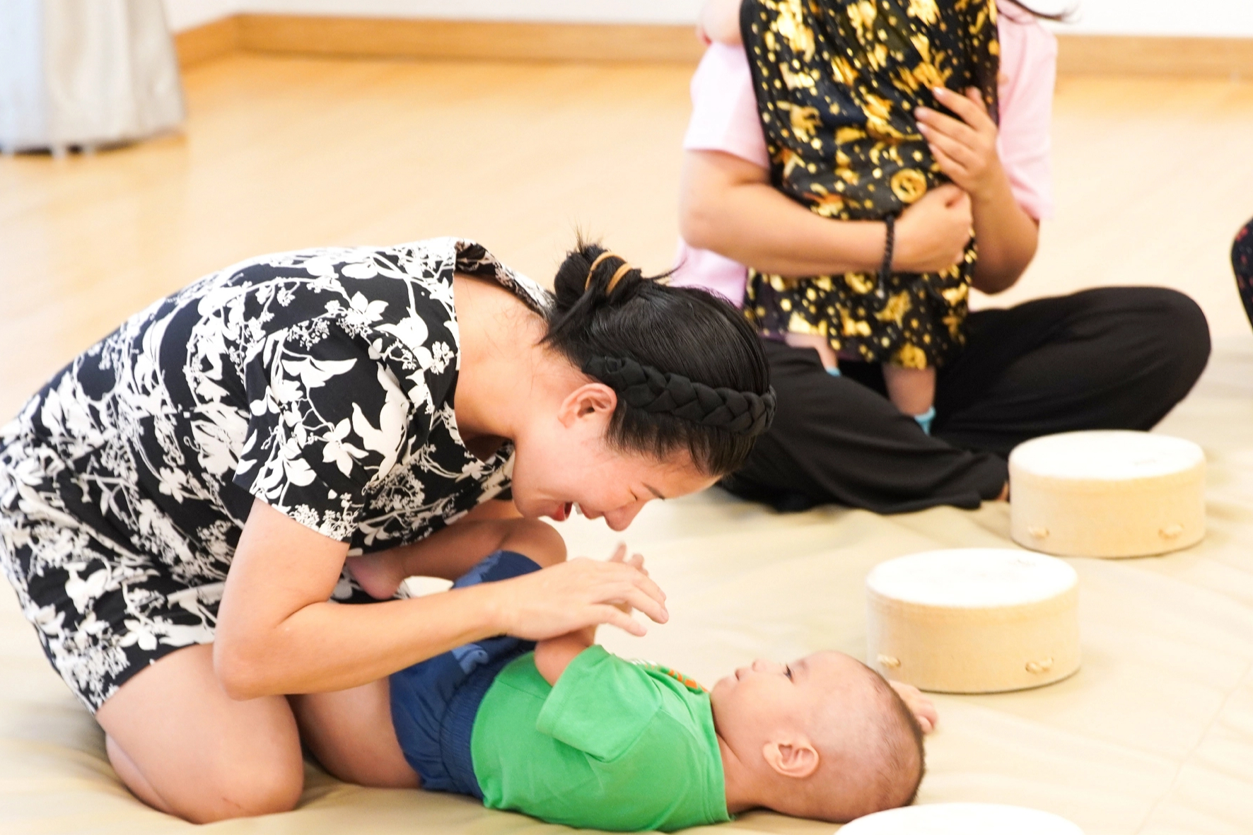 Level 1 dành cho trẻ từ 1-2 tuổi: Bé sẽ được khám phá và chơi với khăn quàng cổ, với gương hay với những chiếc vòng… Làm quen với nhạc cụ và được giới thiệu khái niệm cơ bản về âm nhạc như cao/thấp, nhanh/chậm và luyện tập nhịp điệu ổn định; Hát các bài hát có tiết tấu với sự lặp lại và những nhịp điệu khác nhau; Tương tác, nhảy với các cặp phụ huynh – trẻ khác.