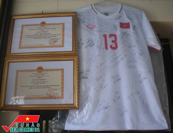 Đến hiện tại, gia đình Nhâm Mạnh Dũng vẫn đang ở trong căn nhà cấp 4 đơn giản. Trong đó phần lớn diện tích bức tường đều trưng bày huy chương cũng như giải thưởng và kỷ niệm thi đấu của con trai.