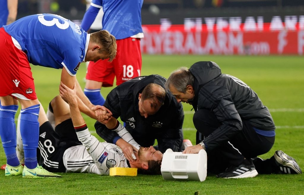 Hãi hùng với pha bóng tuyển thủ Đức bị đối thủ đạp thẳng mặt đầy ghê rợn - Ảnh 1.