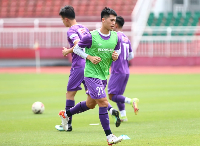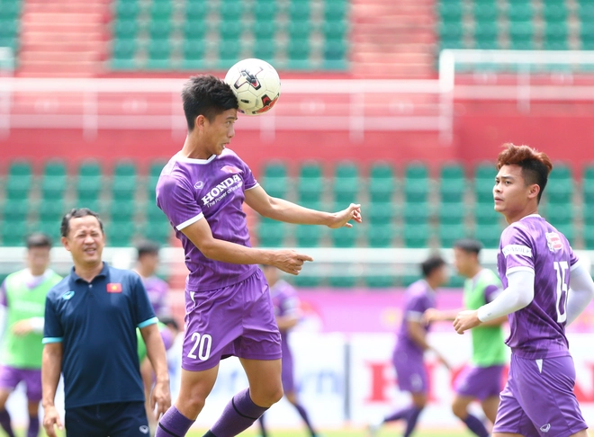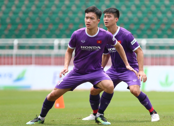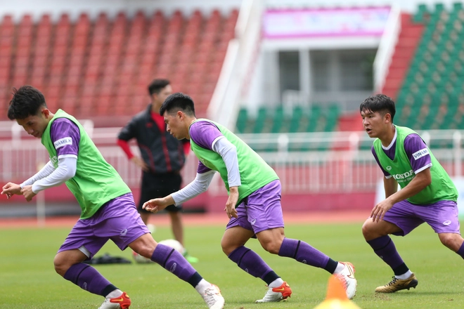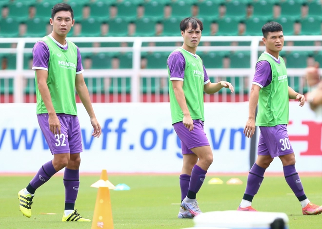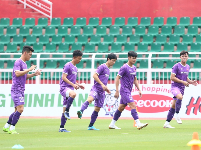 Văn Lâm và các đồng đội chăm chỉ tập luyện cho trận đấu ngày mai (Ảnh: An Tô)