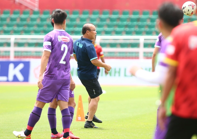 HLV Park Hang-seo tập luyện cùng với các học trò giữa trưa nắng 31/5 (Ảnh: An Tô)
