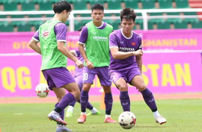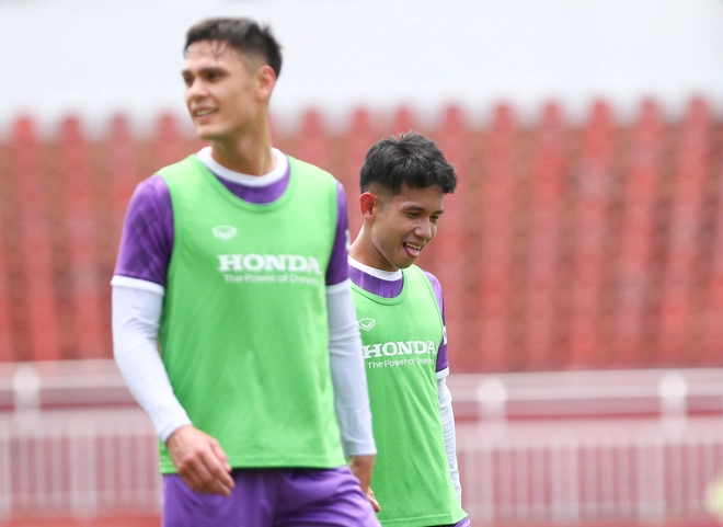 Trong buổi tập trưa nay, các tuyển thủ Việt Nam vẫn tỏ ra khá thoải mái trước trận giao hữu quốc tế với Afghanistan (Ảnh: An Tô)
