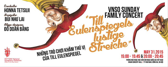 (Cinet)- Hòa nhạc gia đình Richard Strauss: “Những trò chơi khăm thú vị của Till Eulenspiegel” phiên bản tiếng Việt diễn ra vào chủ nhật 31/05/2015 tại Phòng hòa nhạc mới, Học viện Âm nhạc Quốc Gia Việt Nam.