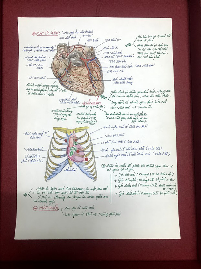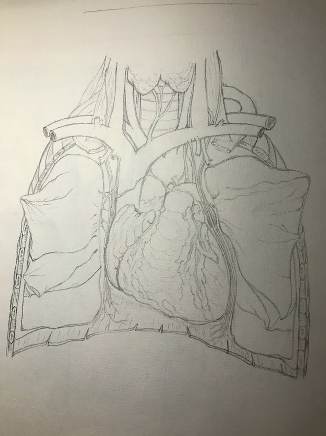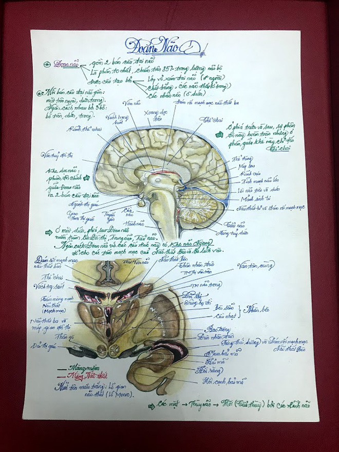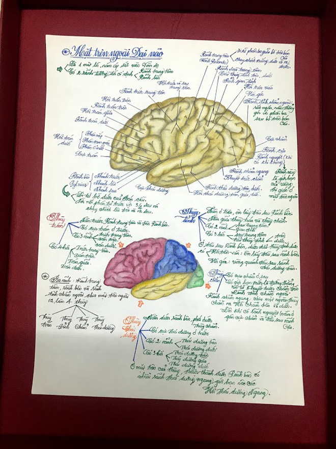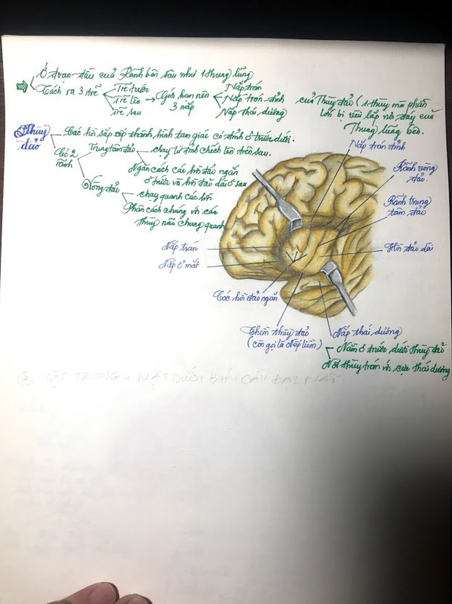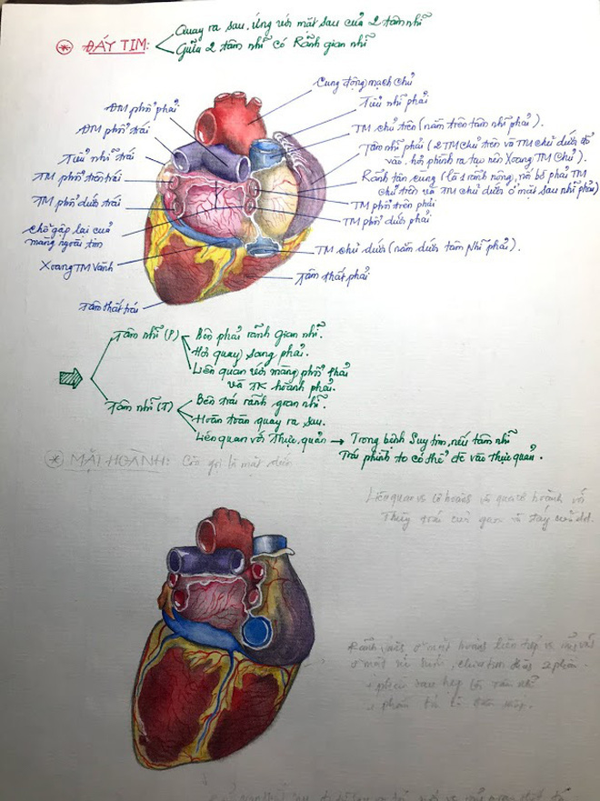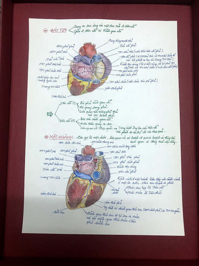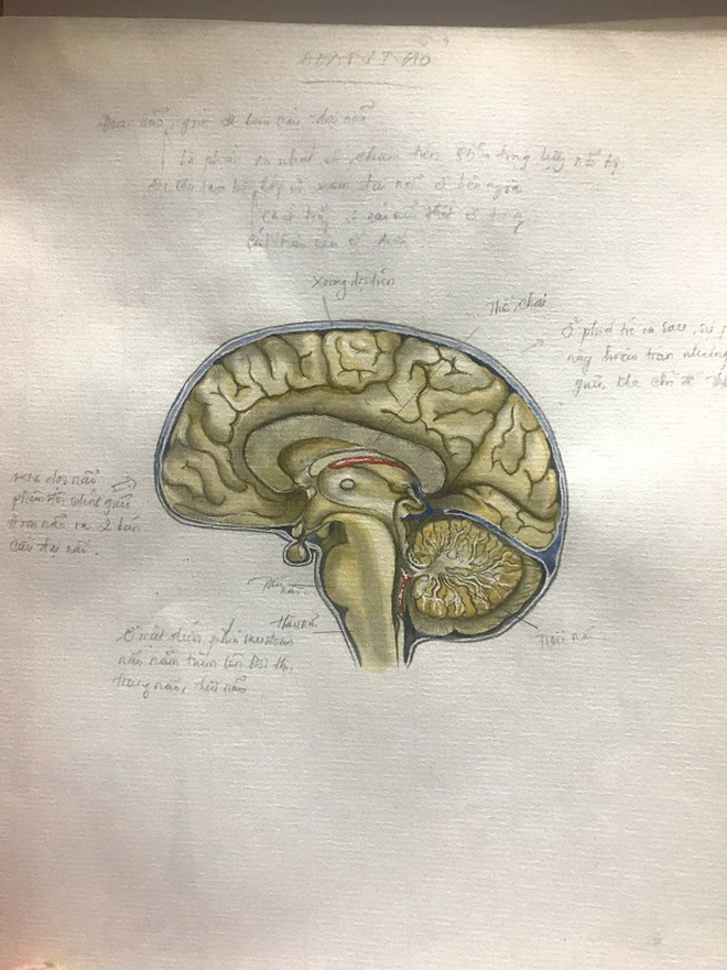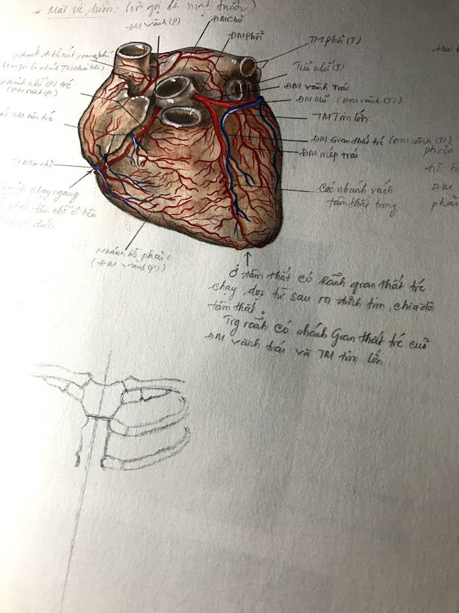 Thậm chí mới đây trên trang cá nhân, bạn Quách Tấn Tài, sinh viên ngành Y đa khoa năm thứ 5 của trường Đại học Trà Vinh còn đăng tải những hình ảnh tự vẽ về bộ môn Giải phẫu học. Loạt ảnh nhanh chóng thu hút sự chú ý của cộng đồng mạng, đặc biệt là môn học khó nhằn này đã được nam sinh trình bày cực hấp dẫn bằng cách vẽ chân thực, chi tiết, ghi chú rõ ràng.