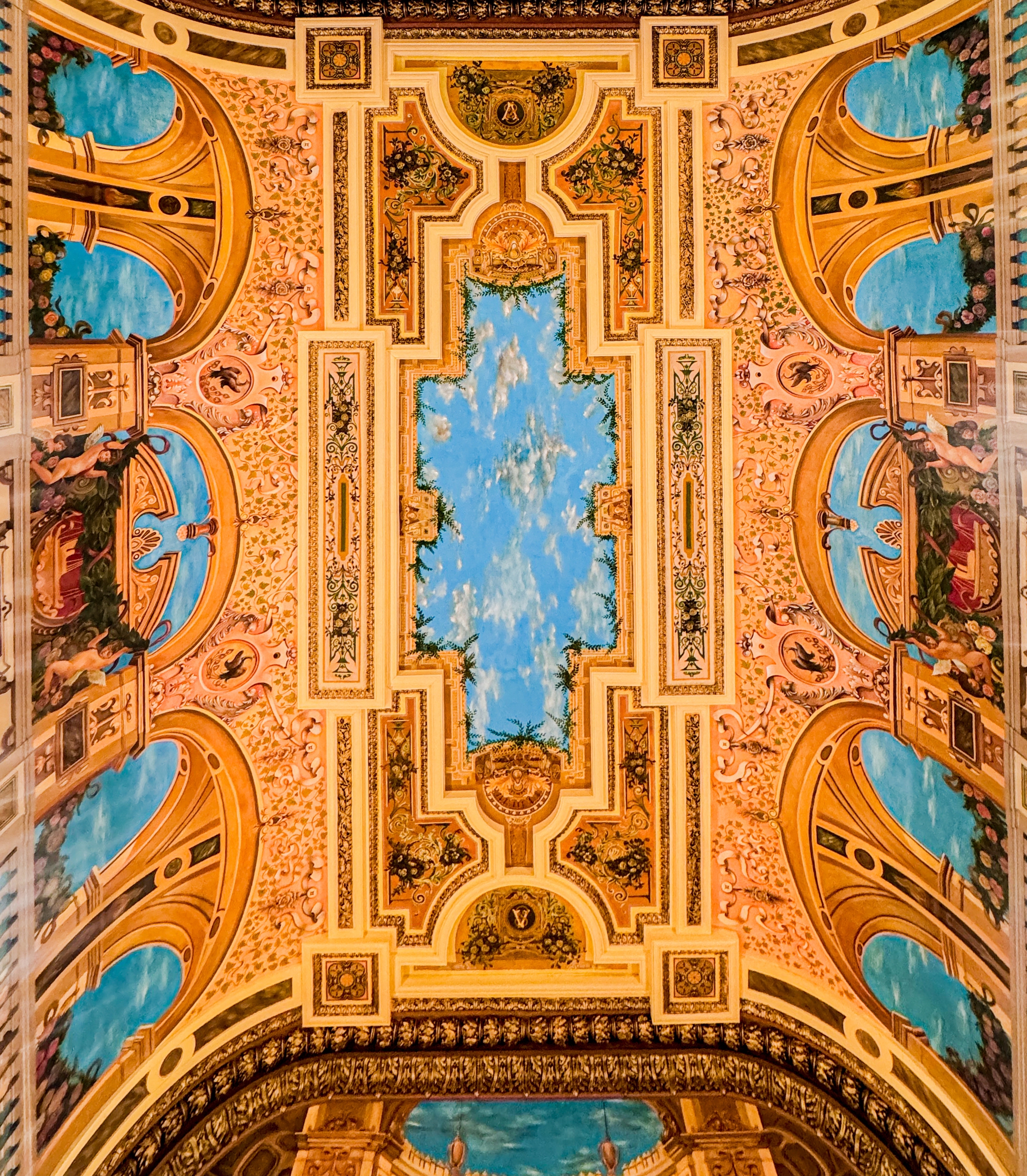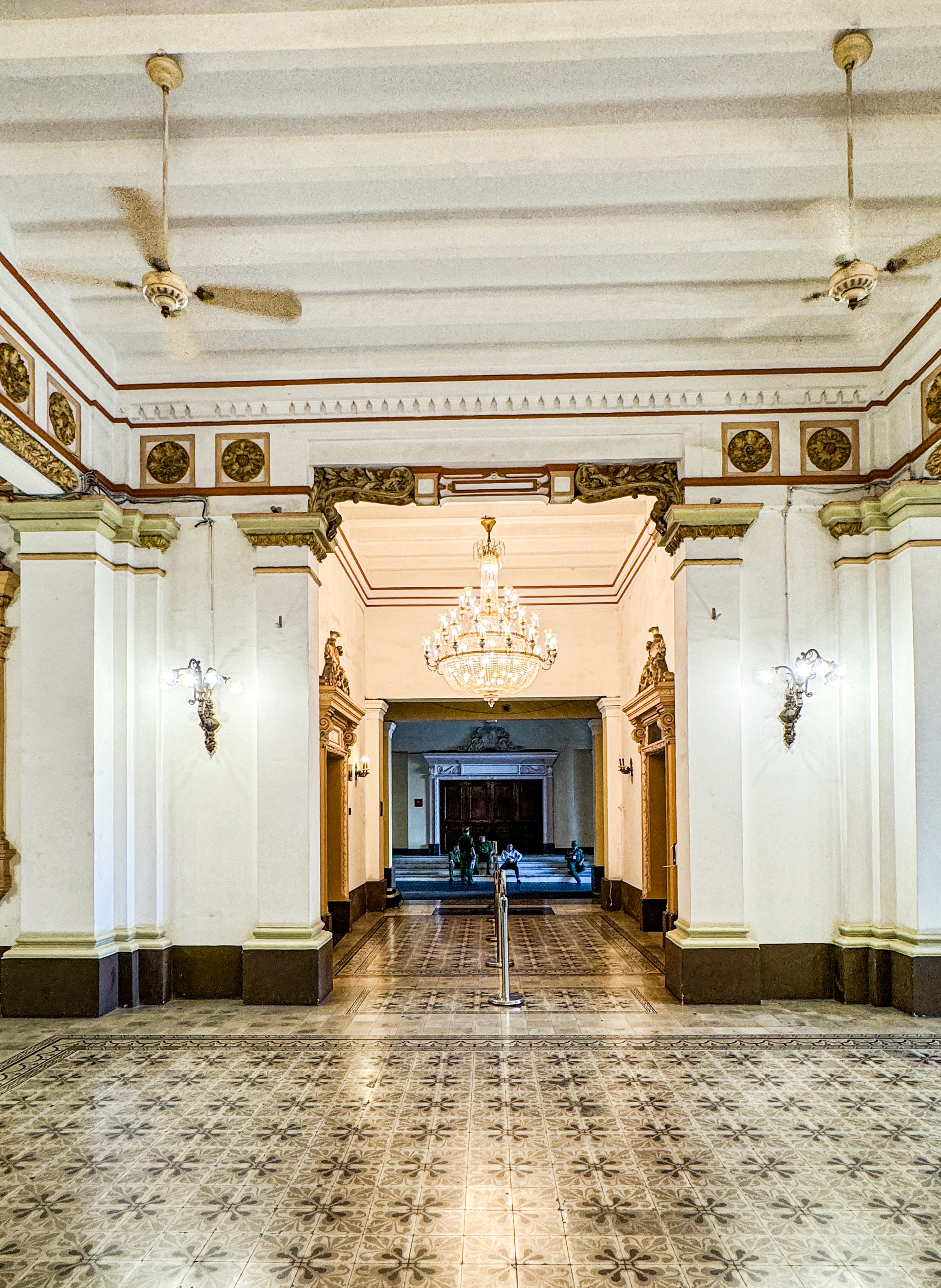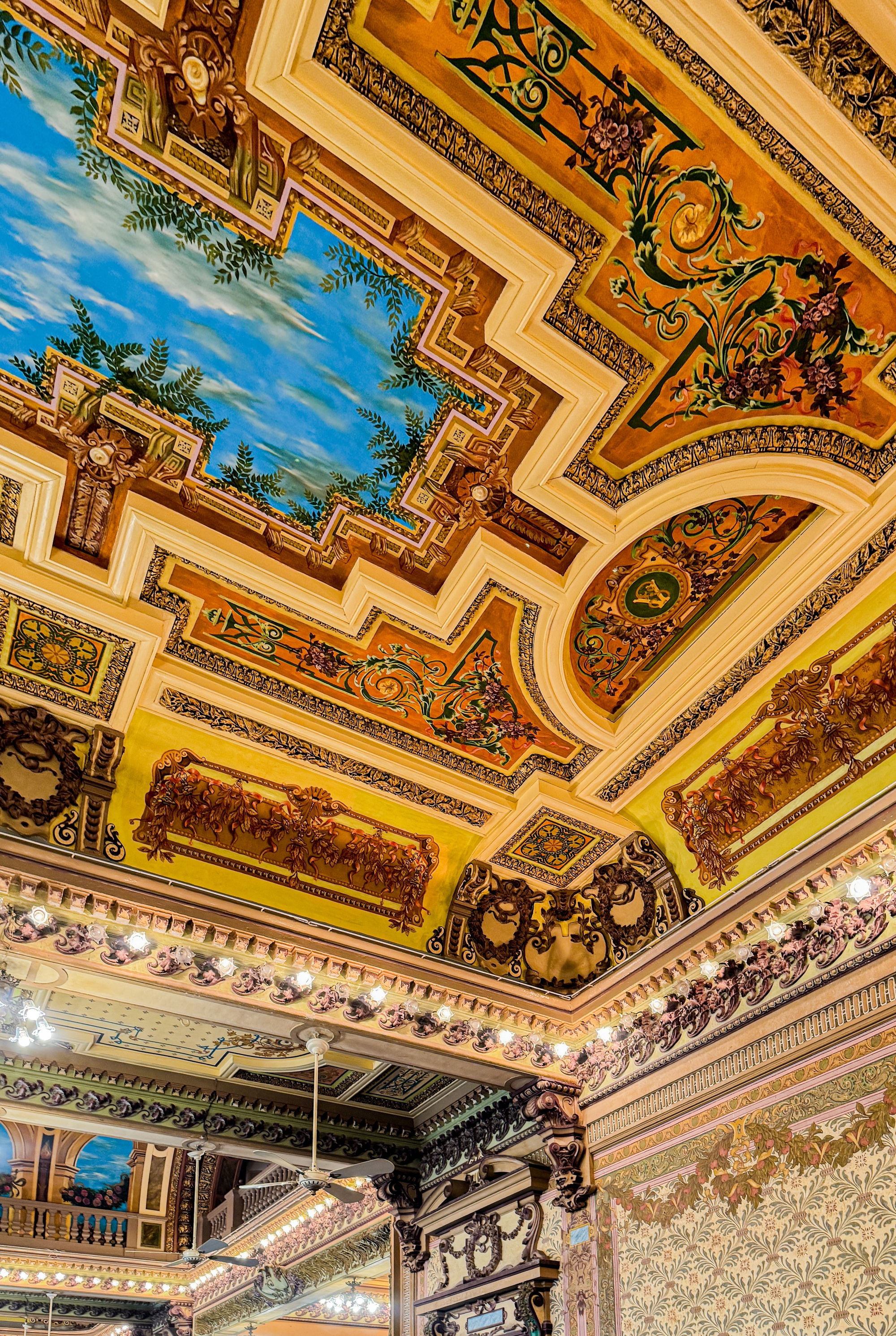 Từ cổng chính dẫn vào sảnh lớn giữa, các bạn sẽ đi đến cầu thang dẫn lên lầu trên. Phía trên là các phòng tiếp khách. Có thể thấy tường và trần nhà tại khu vực tầng 2 được vẽ hình ảnh vòng hoa, lá cọ, cành nguyệt quế, thiên sứ... của thời kỳ văn hóa Phục hưng, làm nổi bật vẻ đẹp nghệ thuật của không gian bên trong tòa nhà.