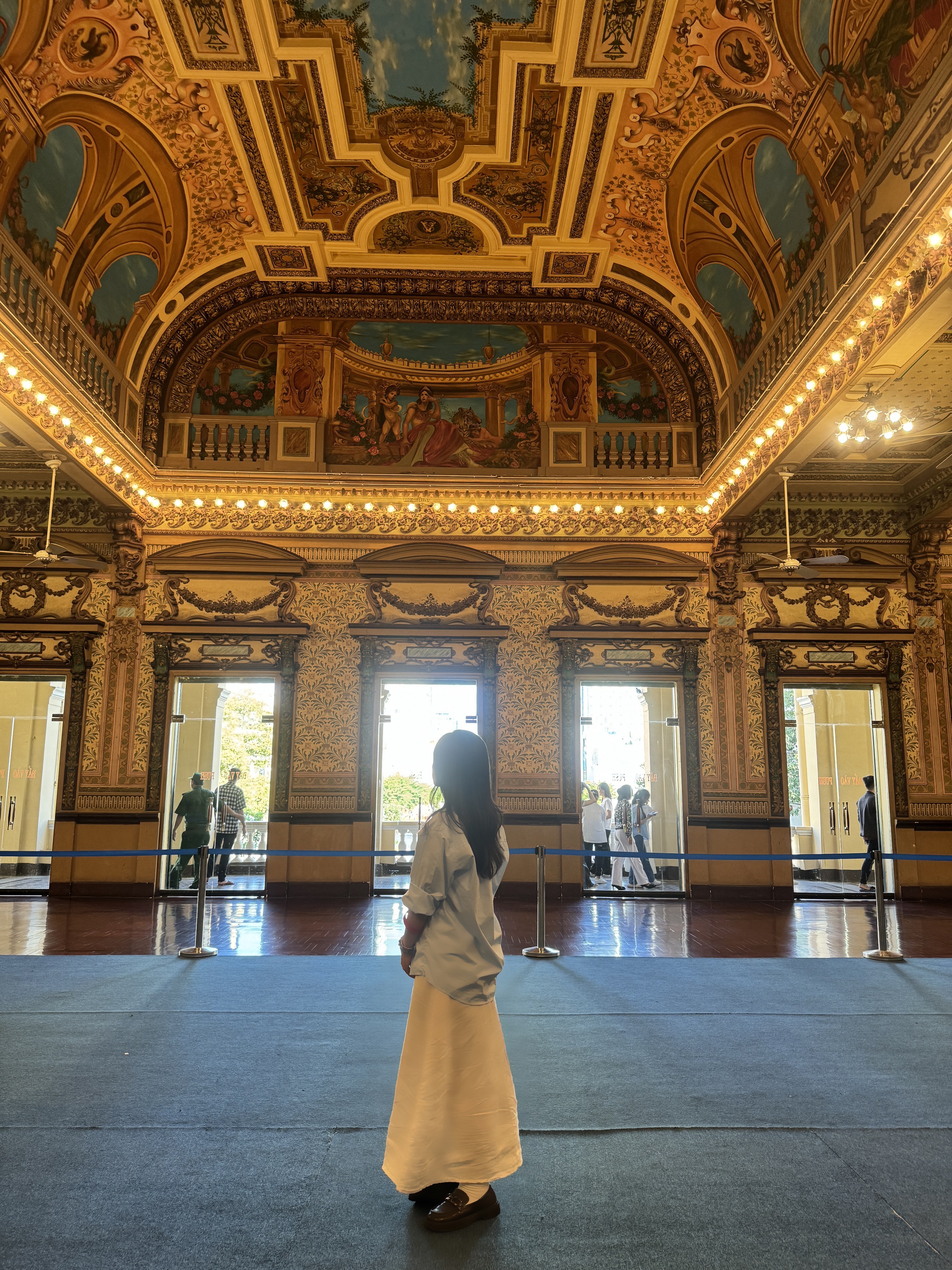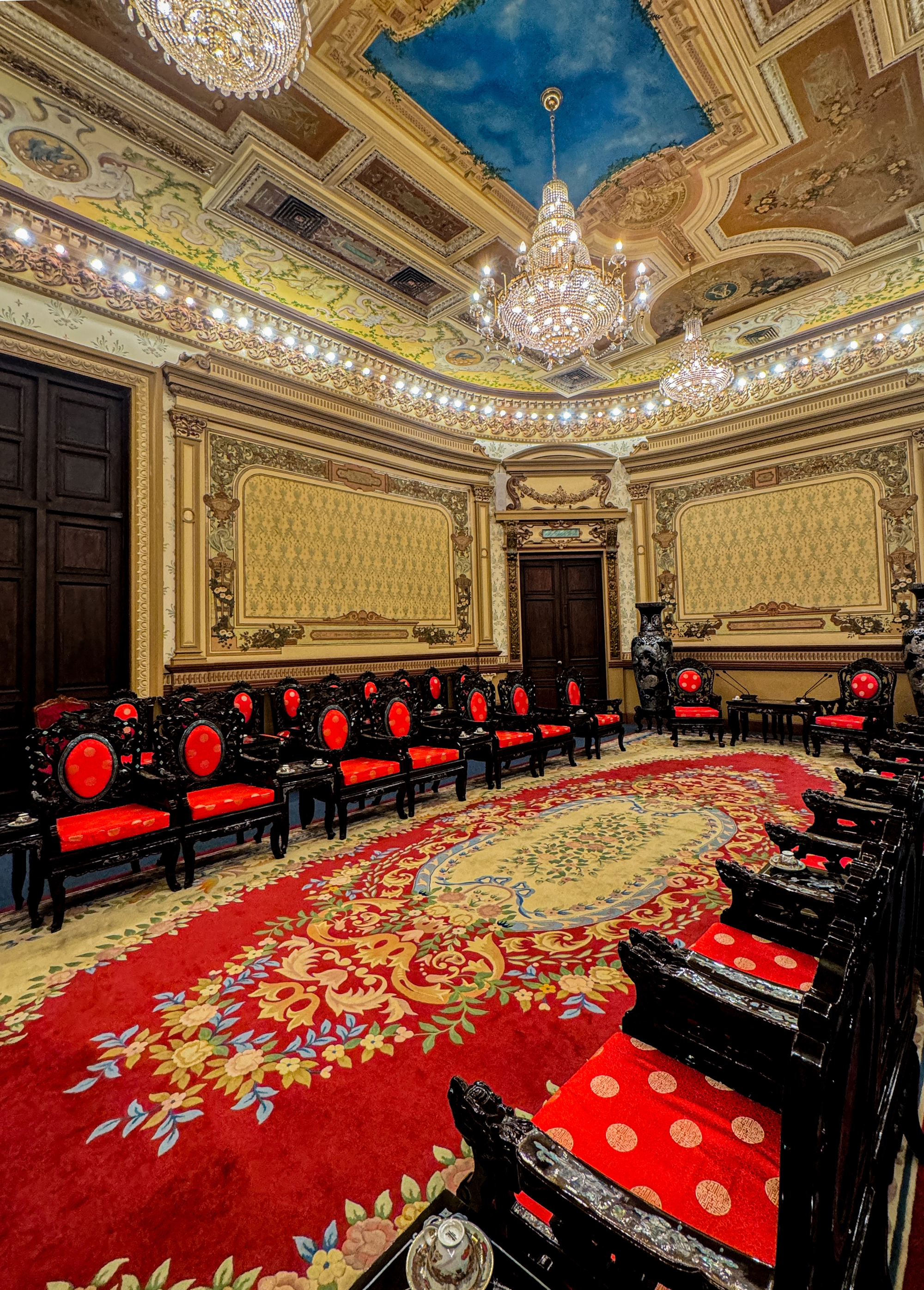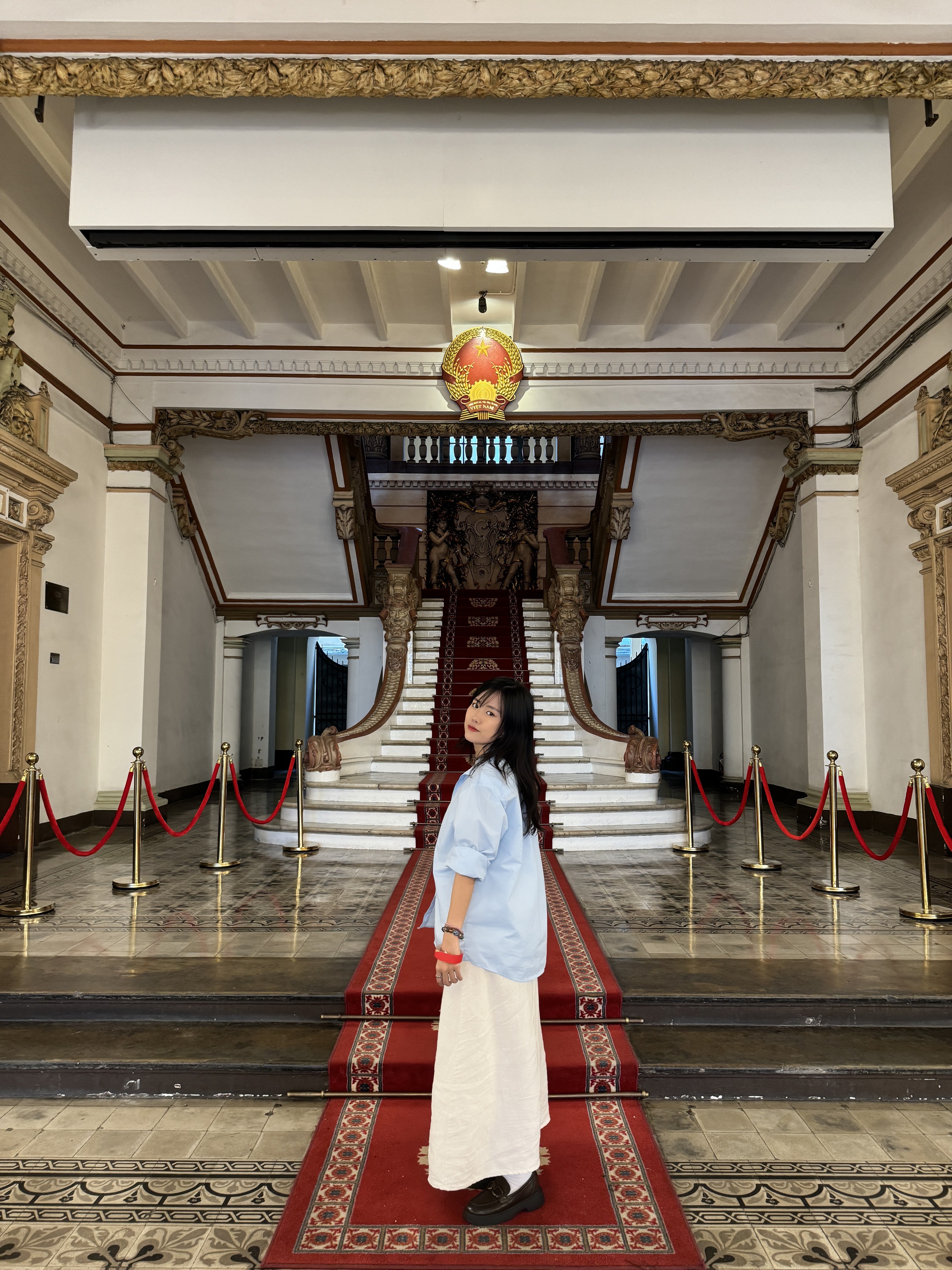 Đến đây, bạn sẽ được tham quan sảnh chính, phòng tiếp khách quốc tế số 1, cầu thang chính, phòng tiếp khách quốc tế số 2 và số 3, ban công, phòng họp số 5. Các không gian bên trong tòa nhà này được trang trí một cách tỉ mỉ bằng những họa tiết đẹp mắt và nghệ thuật, phản ánh phong cách thịnh hành vào thời điểm đó.