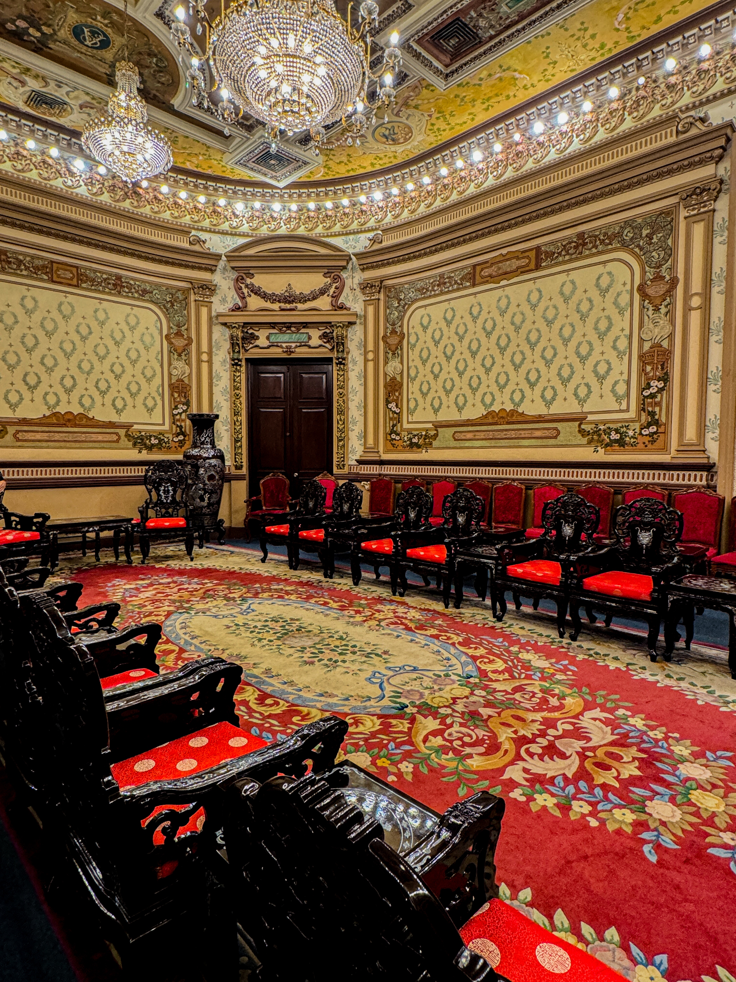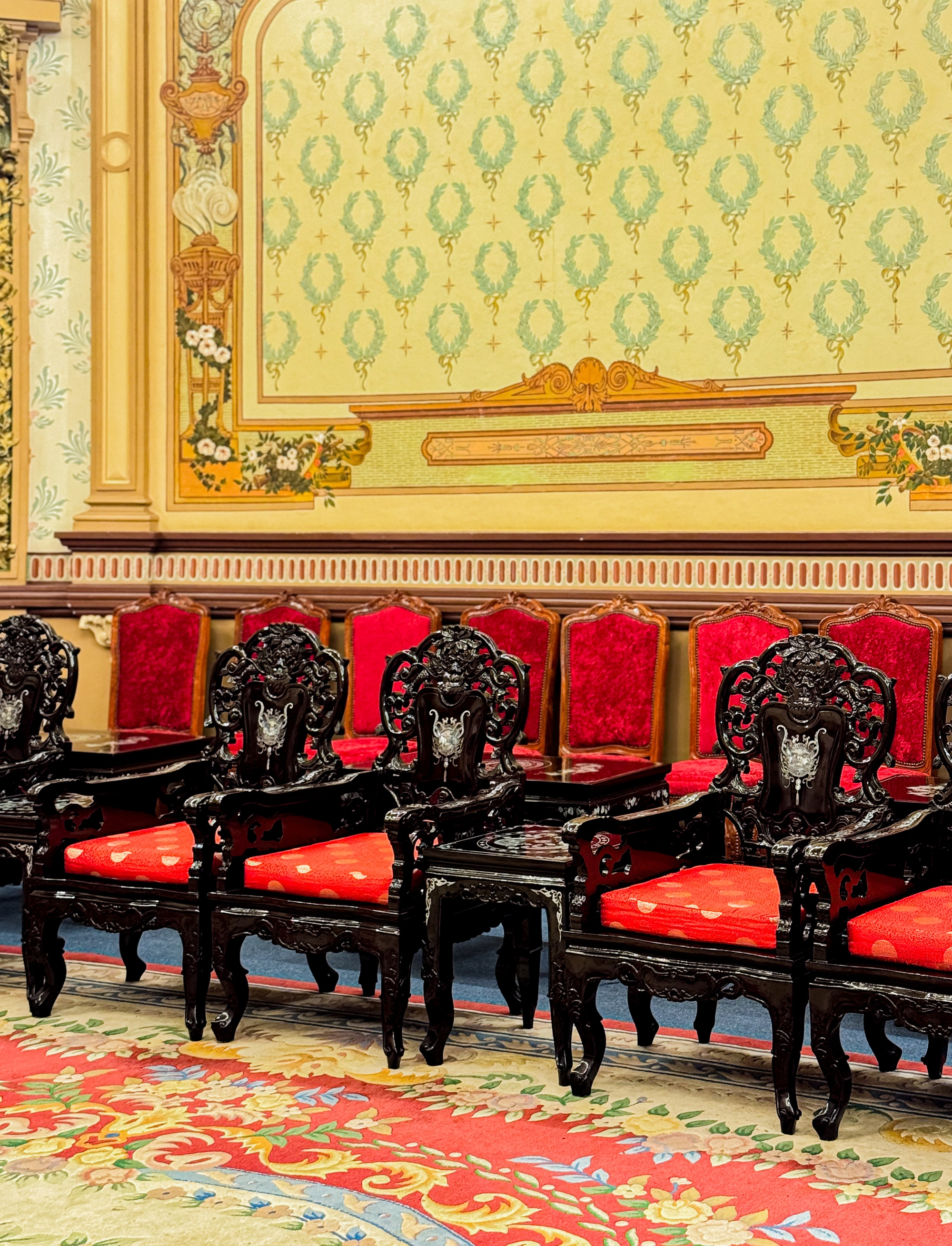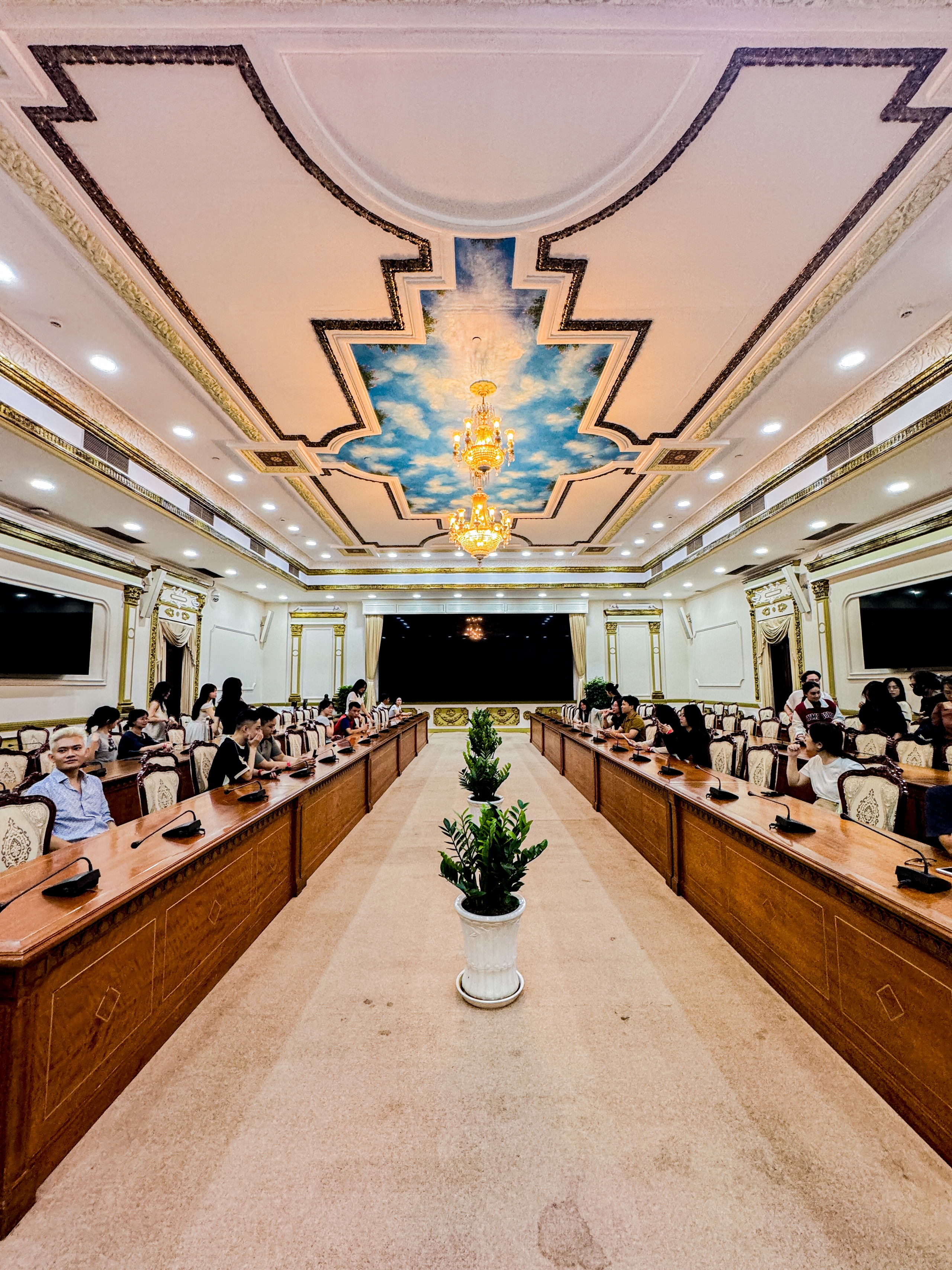 Đến đây, bạn sẽ được tham quan sảnh chính, phòng tiếp khách quốc tế số 1, cầu thang chính, phòng tiếp khách quốc tế số 2 và số 3, ban công, phòng họp số 5. Các không gian bên trong tòa nhà này được trang trí một cách tỉ mỉ bằng những họa tiết đẹp mắt và nghệ thuật, phản ánh phong cách thịnh hành vào thời điểm đó.