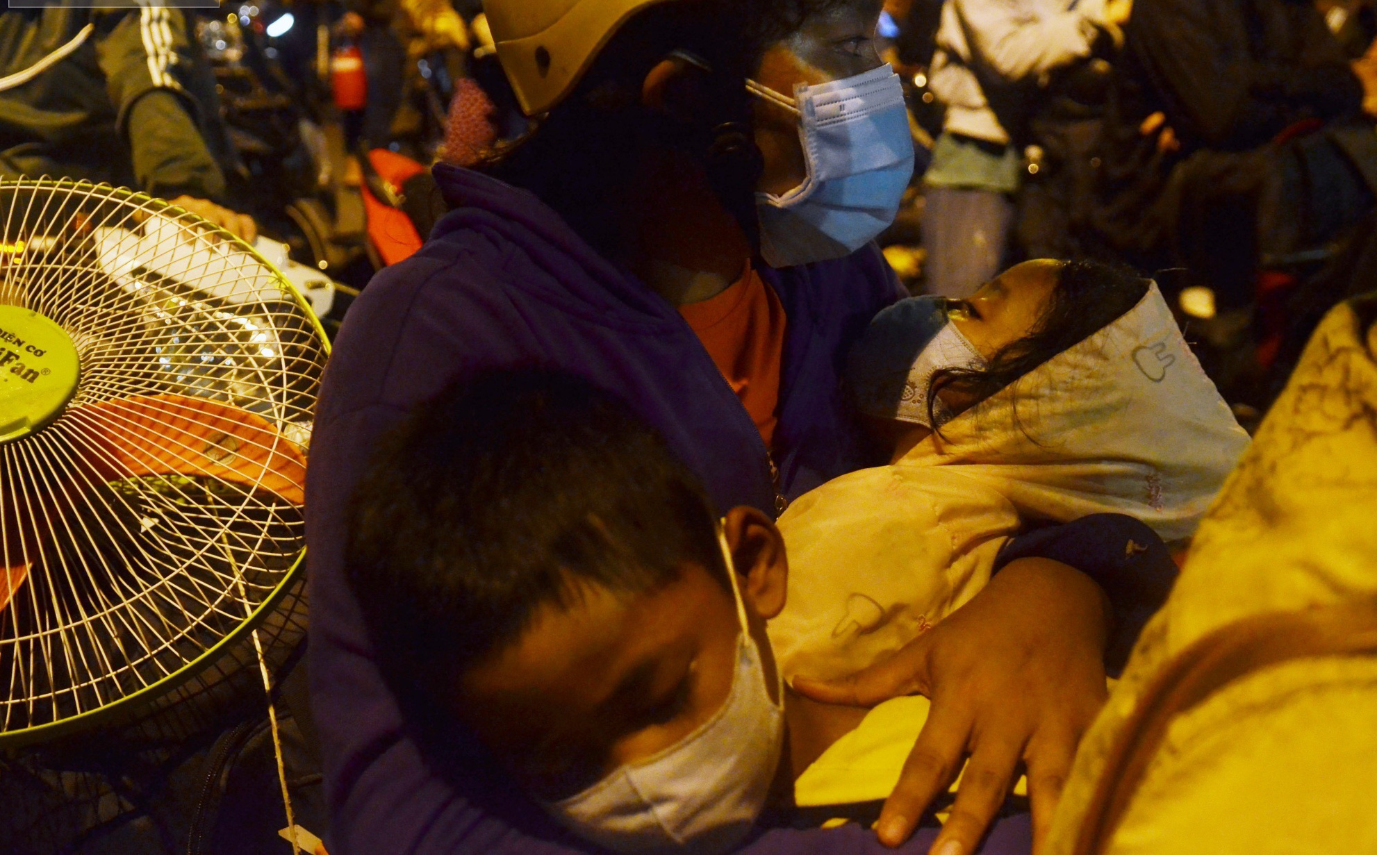 "Lúc đó chị chẳng biết gì đâu nhưng chị biết ở lại chẳng còn nơi nào để trú nữa. Tụi chị đã đứng đợi hơn 6 tiếng chỉ mong để có thể được quê, các con mệt quá rồi" - giọng Kha trầm buồn hẳn khi cố gắng bế 2 đứa nhỏ ngủ trên tay trên chiếc xe máy cũ.
