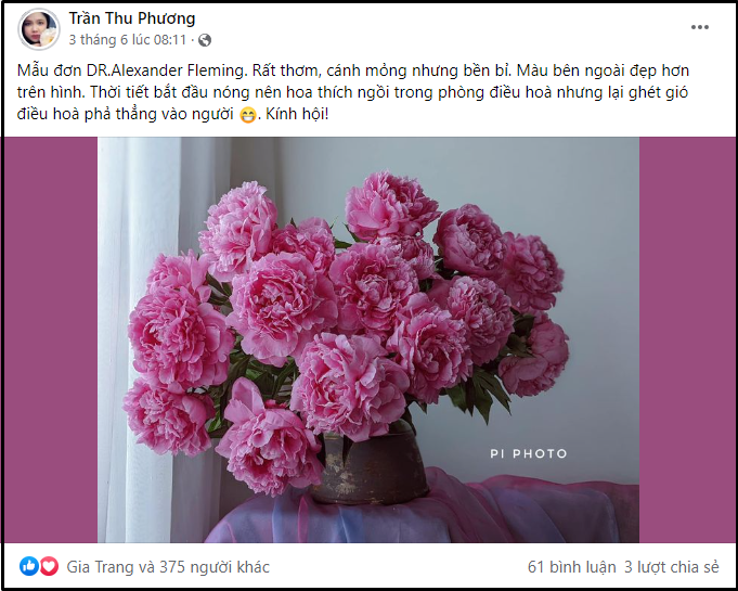 Cũng giống như nhiều người yêu thích hoa mẫu đơn, chị Phương bỏ nhiều công nhiều công sức để tìm hiểu về các loại hoa và trải nghiệm cắm thì chị càng yêu vẻ đẹp của loài hoa này. Thường xuyên đi chợ hoa và đặt online, chị Phương biết rất rõ về giá và đặc tính của từng loại:
