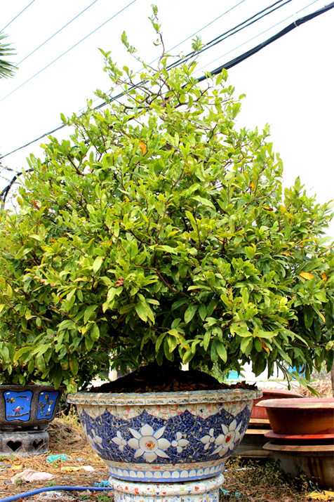 Một chậu mai chuẩn bị vào thời kỳ nhặt lá, bung nụ
