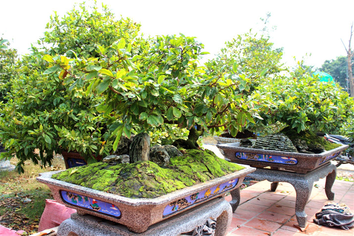 Những cây mai có giá lên đến hàng trăm triệu đồng được đặt tạo thế trong các chậu cảnh bề thế