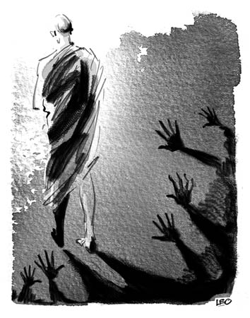 Trò chơi đồng âm ở đây, tự nó, đã khởi động một liên tưởng: làm thế nào để cho sạch Sân, Si trong tâm mình? Hoặc, sau một ngày vào thành phố cùng sư thầy, ấn tượng đọng lại trong điệu Sanh đã được chú bật ra thành một câu hỏi, mà chắc rằng sẽ khiến cho các Thiền giả phải lắc đầu chịu thua: “Con thấy dưới phố ai cũng đeo theo mình một cái bóng đen, cả thầy cũng có. Làm sao dứt được cái đó hả thầy?” (Bóng đổ trên đường đi. Tr 38).