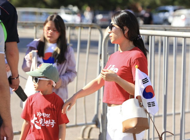 Phía ngoài sân vận động, rất nhiều người hâm mộ Việt Nam đã có mặt. Một nhóm CĐV đi từ Việt Nam sang Uzbekiatan cổ vũ các cầu thủ