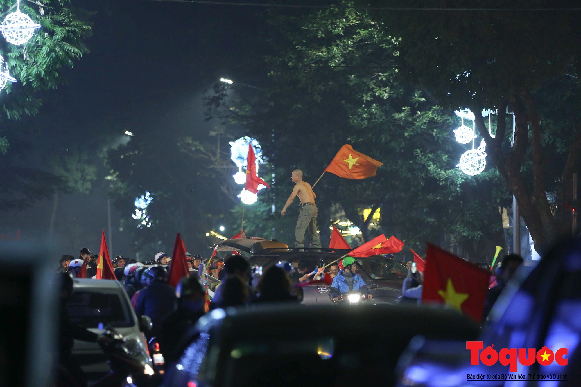 Hàng vạn cổ động viên Hà Nội tràn xuống đường cổ vũ ăn mừng. Theo ghi nhận của phóng viên Tổ Quốc, hàng loạt tuyến phố quanh hồ Gươm như: Hai Bà Trưng, Lý Thường Kiệt, Bà Triệu, Phố Huế... Hàng vạn cổ động viên mang theo có hoa, kèn trống cỗ vũ ăn mừng khiến giao thông tê liệt, tạo nên khung cảnh huyên náo.